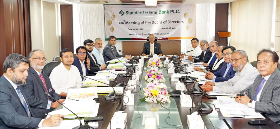 The 424th board meeting of Standard Islami Bank PLC was held at its head office in the city recently. Chairman of the board of directors of the bank Mohammed Abdul Aziz presided over the meeting. Observer of Standard Islami Bank PLC and Director (PSD) of Bangladesh Bank Md Sharafat Ullah Khan, Standard Islami Bank Vice Chairman Gulzar Ahmed, Directors Kamal Mostafa Chowdhury, Ashok Kumar Saha, Ferozur Rahman, SAM Hossain, Mohammed Shamsul Alam, Ferdous Ali Khan, AKM Abdul Alim, Ashit Kumar Saha, Jhahedul Alam and Independent Director Golam Hafiz Ahmed, Acting Managing Director Md Siddiqur Rahman and Company Secretary Md Mizanur Rahman, attended the meeting.