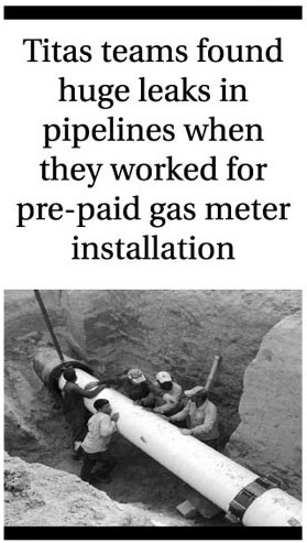 Titas officials said their teams found huge leaks in pipelines at both customers' end as well as utilities’ end when they worked for pre-paid gas meters in recent years.