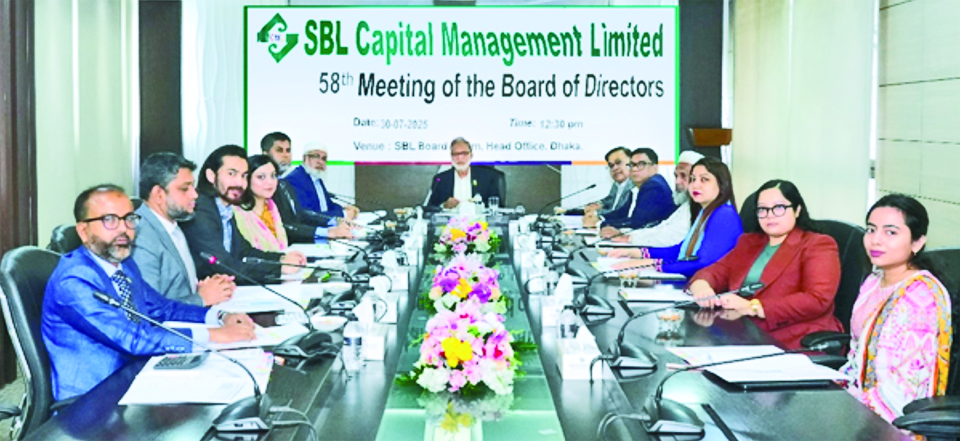 The 58th meeting of the Board of Directors of SBL Capital Management Limited was held on Wednesday at its Head Office in Dhaka. Chairman of the Board Kamal Mostafa Chowdhury presided over the meeting. The meeting was attended by Members of the Board S. A. M. Hossain, Gulzar Ahmed, Md. Habibur Rahman, Sheikh Omar Faruque, Faria Sultana Suma, Tasnia Hussain, Joobaida Khan, Intishar Mostafa Chowdhury and Aniva Saha. Md. Siddiqur Rahman, Deputy Managing Director; Md. Mizanur Rahman FCS, Company Secretary of Standard Bank PLC, and Md. Noruzzaman Khondoker, Chief Executive Officer (Acting) of SBL Capital Management, were also present.