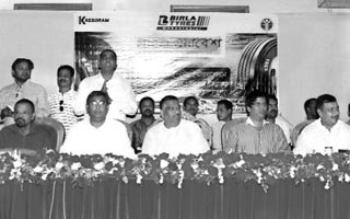 Alhaj Kafiluddin, chairman of Savar Upazila Parishad and chairman of Kafiluddin Group seen with others at the customers\' conference-2014 of Birla Tyres at a community centre in the city\'s Mirpur area Monday. Md Motahar Hossain, proprietor of Dye-Tex Int