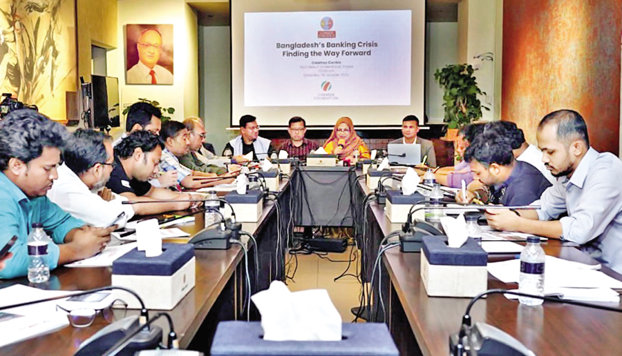 Bangladesh Bank Deputy Governor Nurun Nahar speaks at a seminar, titled "Bangladesh's Banking Crisis: The Way Forward", organised by the Cosmos Foundation in Dhaka on Saturday. Story on page 8