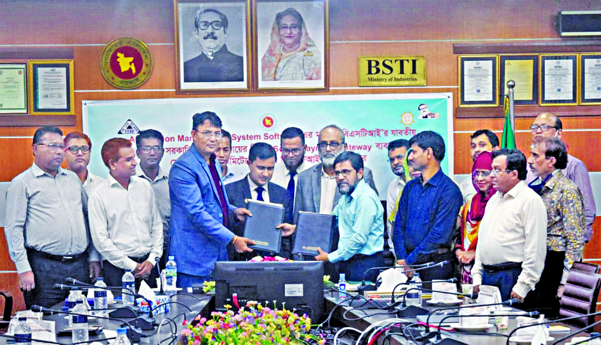 Bangladesh Standards and Testing Institution (BSTI) signed an agreement with Sonali Bank to pay their customers fees and charges through the Sonali Payment Gateway. BSTI Director (Admin) Md Taher Jamil and Sonali Bank General Manager Subhash Chandra Das signed the agreement on Thursday at BSTI Head Office in the capital