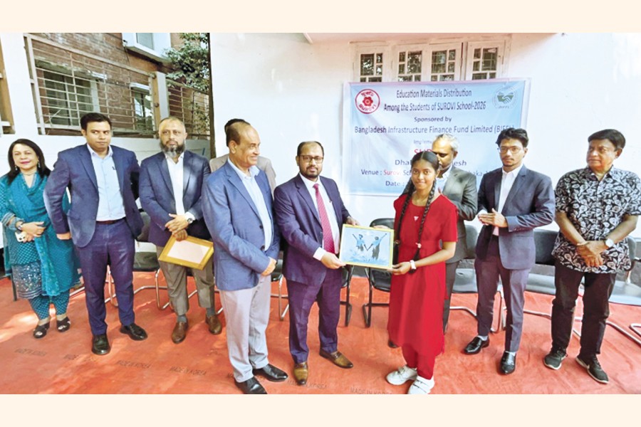Bangladesh Infrastructure Finance Fund Limited (BIFFL) on Wednesday distributed educational materials among underprivileged students of Surovi School, founded by distinguished social worker Syeda Iqbal Mand Banu, in Dhanmondi, Dhaka. Chief Executive Officer of BIFFL S. M. Anisuzzaman and Executive Director of Surovi Md. Abu Taher handed over the educational materials to the students. Besides, other officials of BIFFL, teachers and officials of Surovi School were present. At the end of the event, students presented an enjoyable cultural performance.