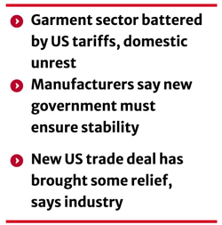 "The 0% reciprocal tariff offer, along with the fact that we will soon have an elected government, means that things could improve for the ready-made garments industry," said Faisal Samad, a BGMEA director and managing director of Surma Garments Ltd that sells to Reebok, Primark and others.