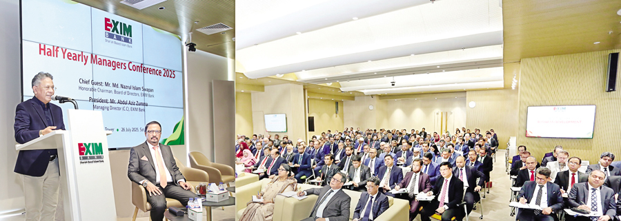 EXIM Bank held its Half Yearly Managers Conference 2025 on Saturday. Chairman of the Bank Md. Nazrul Islam Swapan was present as Chief Guest while Managing Director (Current Charge) Abdul Aziz Zumma presided over the conference at Exim Bank Head Office.