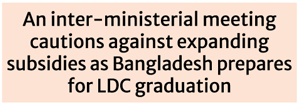 The meeting argued that new subsidies would strain the economy and also contradict with the ongoing efforts to reduce financial support ahead of the country's graduation to Least Developed Country (LDC).