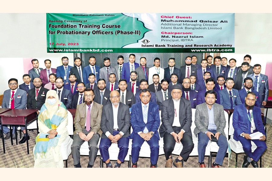 Islami Bank Training and Research Academy (IBTRA) organised a 15-day Foundation Training Course for probationary officers on Monday. Muhammad Qaisar Ali, Additional Managing Director of the bank, addressed the programme as the chief guest. Presided over by Md Nazrul Islam, Principal of IBTRA, KM Munirul Alam Al-Mamoon, Senior Executive Vice President, and Mohammad Hasnain Abid, Senior Vice President of the bank, were also present.