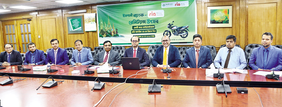 IBBL-RIA MONEY REMITTANCE FESTIVAL: Md Siraj Uddin Shah, a client of Islami Bank Bangladesh Limited, Sylhet Branch, won the 34th motorcycle under a campaign titled 'Islami Bank-Ria Money Transfer Cash Remittance Festival'. He won the motorcycle for receiving remittance from Mohammad Sahel Ahmed, an expatriate living in France. The name of the winner was announced at a programme at Islami Bank Tower in Dhaka on Tuesday. Mohammed Monirul Moula, Managing Director and CEO of IBBL, Suhail Shamsi, Business Development Director (South Asia) of Ria Money Transfer, and other senior officials were present on the occasion. During the campaign, which will run until May 14, an IBBL client receiving cash remittance through Ria Money Transfer can win a motorcycle every day.
