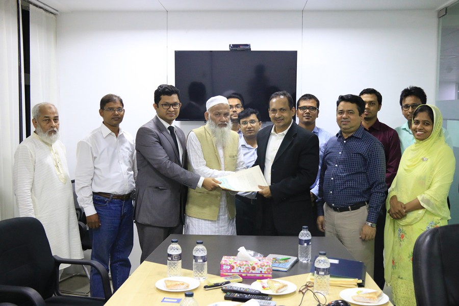 Executive Director and CEO of IDCOL Mahmood Malik and Chairman of Egarosindur Cold Storage Ltd. Md Mir Hossain exchanging documents after signing an agreement recently, under which IDCOL will finance the first rooftop solar project at the cold storage with a capacity of 322.5 kWp