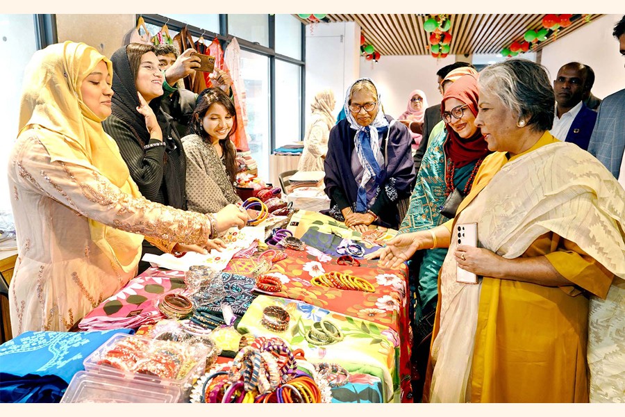 Social Welfare and Women and Children Affairs Adviser Sharmin Morshed goes round different stalls after inaugurating the Joyita Bijoy Mela-2025 at Joyita Foundation of Dhanmondi in the city on Thursday. — PID