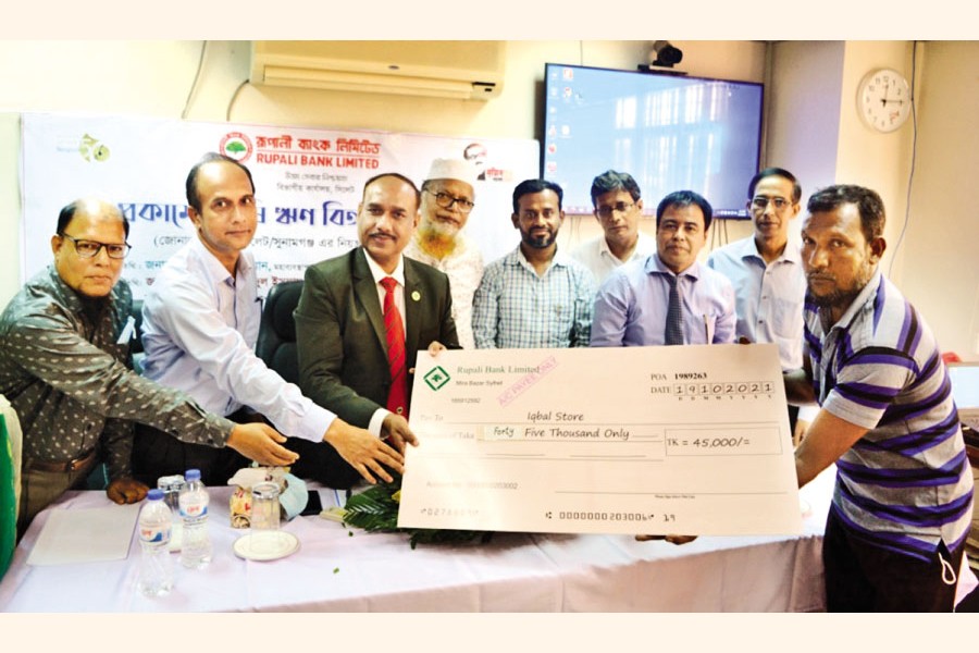 Rupali Bank Limited General Manager (Agriculture, Rural Credit and Microcredit Division) Md. Majibur Rahman spoke at a farm loan distribution programme at its Sylhet divisional office recently. General Manager and divisional chief (Additional Charge) for the Sylhet divisional office Kazi Md. Wahidul Islam joined the programme virtually