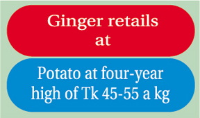 Potato (stored cardinal/diamante varieties) was selling at a four-year high of Tk 45-55 a kg.