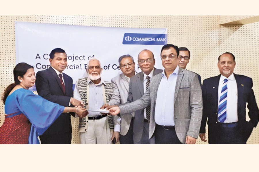 Chief Operating Officer of Commercial Bank of Ceylon PLC Najith Meewanage handing over a cheque to Founder and Advisor of Society for Assistance to Hearing Impaired Children (SAHIC) Prof. M. Nurul Amin as part of the bank's corporate social responsibility activities in the capital recently