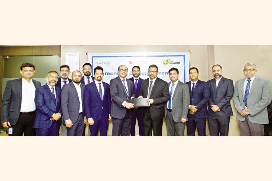 ONE Bank Limited recently signed an MoU with CASHe Alliance Limited for introducing digital lending. Under the MoU, ONE Bank will be able to offer a digital loan facility leveraging embedded lending technology of CASHe and OK Wallet platform. Managing Director of ONE Bank Limited Md Monzur Mofiz and Chief Operating Officer of CASHe Alliance Limited Kazi Nasim Ahmed signed the MoU on behalf of their respective organisations