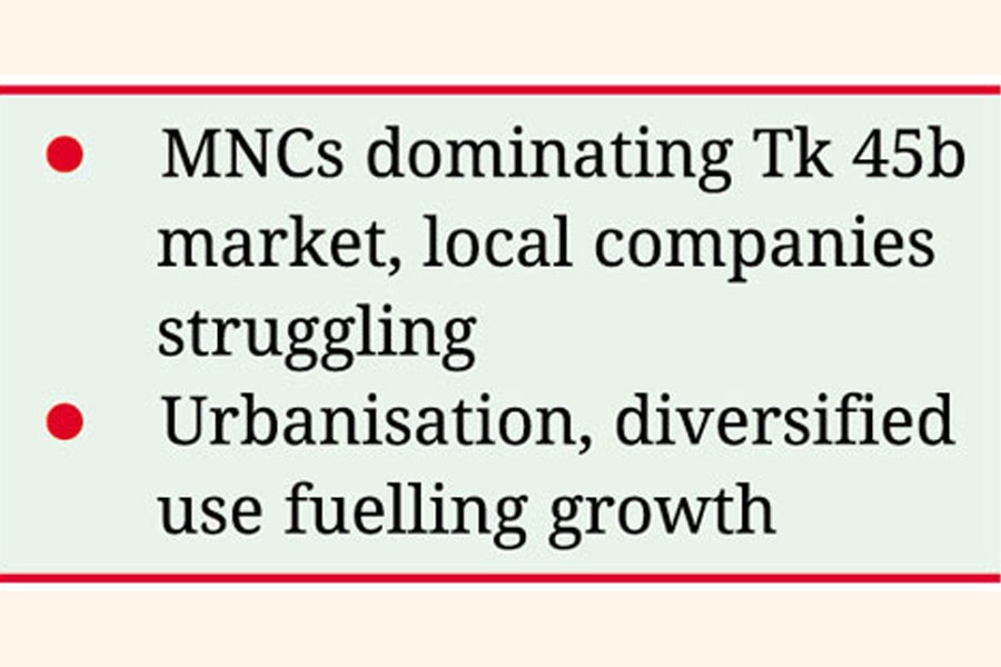 The country's paints industry continues to expand, with the multinational corporations (MNCs) dominating the Tk 45-billion paints market, insiders said.