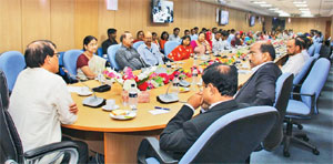 Bangladesh Bank Governor Dr Atiur Rahman holding an orientation meeting with the newly-recruited assistant director of the central bank in the city Tuesday. Deputy governors of the Bangladesh Bank Md Abul Quasem, SK Sur Chowdhury, Nazneen Sultana and Abu