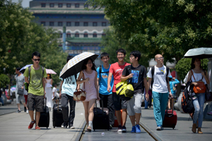 BEIJING: Pedestrians walking along a business street here on Monday. China, the world\'s second-largest economy after a decades-long boom, provided a total of US$14.4 billion in foreign aid in the three years to 2012, it said on July 10. — AFP Photo