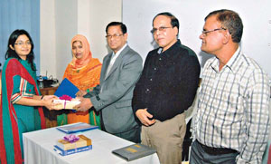 Deputy Managing Director of Janata Bank and Director of Janata Bank Training Institute Topon Kumar Ghosh handing over certificate to one of the participants of a Foundation Training Course organised by the bank for its newly recruited Executive Officers (