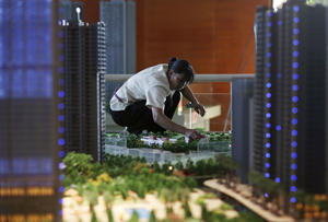 KUNMING, China: A worker cleaning models of apartments at a showroom in Kunming, Yunnan province, on Sunday. Chinese banks\' bad loan ratio rose to 1.08 per cent at the end of June from 1.04 per cent in March, the banking regulator said on Friday, adding