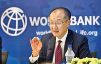 NEW DELHI, India: World Bank president Jim Yong Kim addressing a press conference in India\'s capital New Delhi on Wednesday. Jim Yong Kim is on a three-day visit to India. — AFP Photo