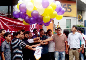 Chairman of Okapia Subrata Das and Managing Director Tofazzul Hossain launching Okapia smart and feature phones at Sanmar Ocean City in Chittagong Saturday. From now on, Okapia Mobile will be available in 31 (SIS) outlets at 11 markets around the port cit