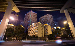 Photo: SHANGHAI, China: A car drives in front of residential homes