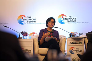 SINGAPORE : Sri Mulyani Indrawati, managing director and chief operating officer of the World Bank speaks during the Singapore Summit in Singapore on Saturday. The conference, held annually in conjunction with the Formula One Singapore Grand Prix, is orga