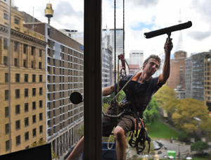 SYDNEY, New South Wales, Australia: A photo taken on March 31, 2014, showing a window cleaner at work in Sydney\'s Central Business District as Australia\'s unemployment rate returned to a decade high of 6.0 per cent in June data has showed on Thursday. T