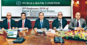 The 2nd Conference - 2014 of regional and corporate branch managers of Pubali Bank Limited in progress in the city Sunday. Chairman of the board of directors of the bank Hafiz Ahmed Mazumder attended the conference as the chief guest, while managing direc
