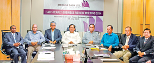 The half-yearly business review meeting of Meghna Bank Limited in progress in the city Saturday. Chairman of the bank H N Ashequr Rahman, MP, attended the meeting as the chief guest, while managing director Mohammed Nurul Amin presided. Vice chairman Abdu