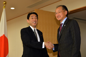 Photo: TOKYO, Japan: World Bank Group President Jim Yong Kim (right) shakes hands