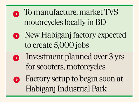 The initiative is expected to generate direct and indirect employment for about 5,000 people. Work on setting up a motorcycle assembly and manufacturing plant at the Habiganj Industrial Park will begin soon.