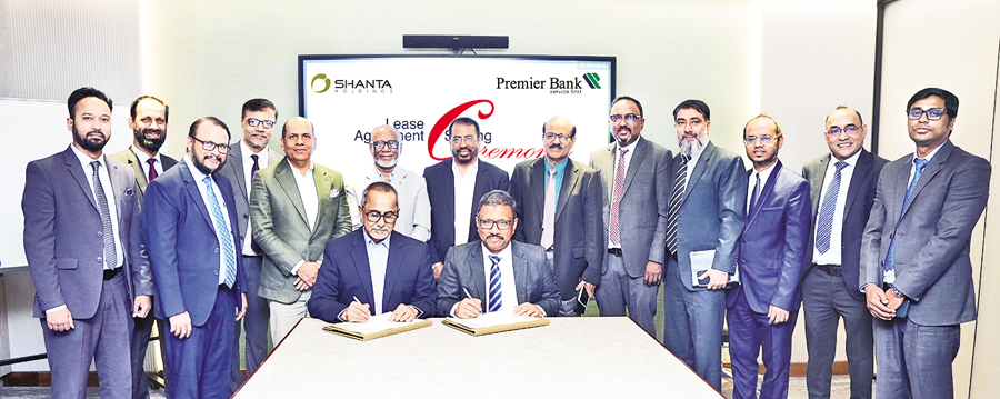 The Premier Bank PLC and Shanta Holdings Limited on Wednesday signed a strategic agreement under which the Bank's head office will relocate from Iqbal Tower to the modern and eco-friendly 40-storey tower 'Shanta Pinnacle' in Dhaka city. Dr. Arifur Rahman, Chairman, The Premier Bank PLC; M. Nurul Alam, CGIA, Independent Director and Chairman, Premier Bank Securities Limited; Md. Monzur Mofiz, Managing Director (Current Charge) attended the ceremony on behalf of The Premier Bank, while M. Habibul Basit, Chief Executive Officer; M. Anisul Haque, Executive Director, Group Finance; Mohammad Shihab Ahmed, Chief Sales Officer attended the event on behalf of Shanta Holdings Limited.