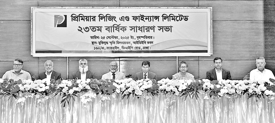 The 23rd Annual General Meeting of Premier Leasing & Finance Limited was held at the Institution of Diploma Engineers Bangladesh, IDEB Bhaban, in Dhaka on Thursday. The meeting was presided over by Md. Ashekur Rahman, Chairman of the company. Husne Ara Shikha, Executive Director of Bangladesh Bank and Administrator in PLFL, joined the meeting virtually. Independent Director & Chairman of Audit Committee S. M. Zahir Uddin Haider, Independent Directors Abduhu Ruhul Masih, Md. Reaz Hasan, Shirin Akhter and Brig Gen (Retd.) Tushar Kanti Chakma were present in the meeting. Executive Vice President and Company Secretary and Managing Director (CC) Subash Chandra Moulick and Vice President and CFO Syed Monir Hossain were also present.