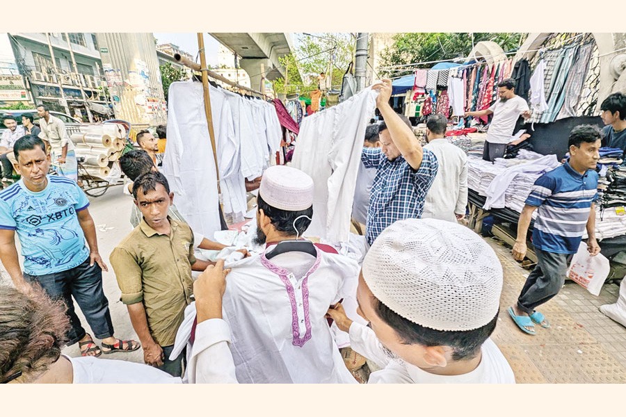 With only a short time left before Eid-ul-Fitr, people are busy making their last-minute purchases. The photo was taken in the Baitul Mukarram area on Wednesday.