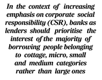 Discrimination in the field of economic management leads to a rise in economic inequalities. Banks have a critical role in facilitating economic growth in terms of income and wealth of their borrowers. In the context of increasing emphasis upon corporate social responsibility (CSR) , banks as lenders should prioritise the interest of the majority of borrowing people belonging to cottage, micro, small and medium categories rather than large ones. This approach to lending is ethical and beneficial not only for the economy but also for the lending banks.