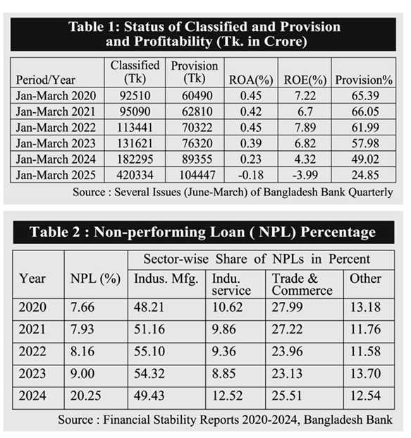 Accounting standard board argues for loan loss provisioning to establish discipline and transperancy in financial reporting whereas banking corporate governance ought to ensure disciplined behaviour of defaulters by resorting to legal measures. Provisioning as suggested and instructed by Basel and national supervisors is just cleaning the financial statements, not containing the risk of credit loss at all. Loan loss provisioning refers to allocating fund from profit to cover potential losses from defaulted loans of banks or other lending institutions. It is claimed that these provisions act as a financial buffer so that banks can absorb losses without severely impacting their overall financial stability. The critical question is: can financial stability be ensured with declining profitability and solvency? Table 1 clearly signals about our banking sector that profitability has been falling, shortfall in provisioning is also on the increase ( fall in provisioning ratio) , and there has been a surge of 131 per cent in NPL in 2025 over the time span of just one year. Is it a sign of financial stability? We forget to realise that provisioning has a limit.