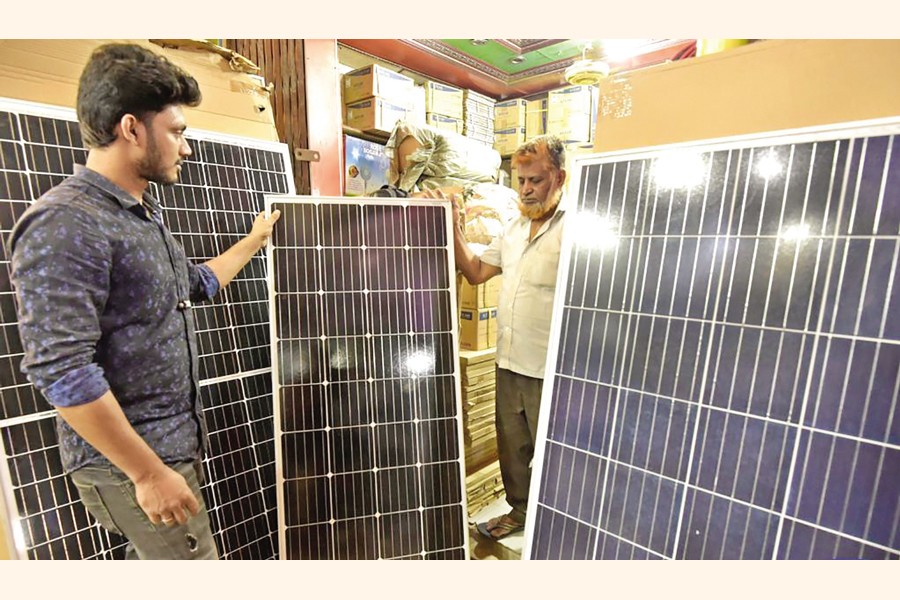 A customer looks at energy efficient solar panels at a store in a wholesale market in Dhaka, Bangladesh on November 24, 2021— Xinhua Photo Renewable energy has overtaken coal as the world's leading source of electricity in the first half of this year -- a historic first, according to new data from the global energy think tank 'Ember'.