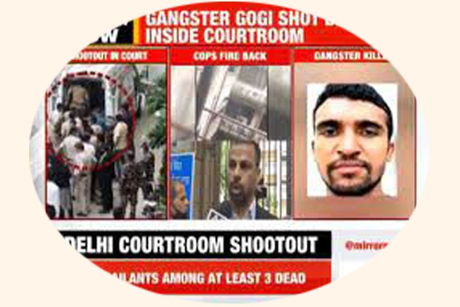Mobile phone videos of the shooting at the court in the Rohini district of Delhi showed lawyers and litigants running for cover in the corridor outside the court as gunshots rang out.