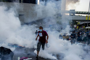 HONG KONG, Sept 28 (agencies): Police fired tear gas as tens of thousands of pro-democracy demonstrators brought parts of central Hong Kong to a standstill Sunday, in a dramatic escalation of protests that have gripped the semi-autonomous Chinese city for days.