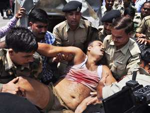 INDIA : Mortally wounded Indian Border Security Force (BSF) soldier Constable Sanjay Dhar from 192 Battalion. —AFP