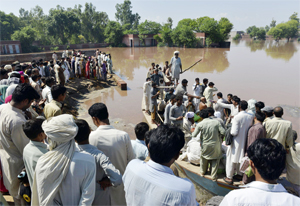 SRINAGAR, Sept 8 (agencies): Authorities in India and Pakistan made frantic efforts Monday to pluck tens of thousands of people to safety from floods which have killed at least 350 people as desperate residents huddled on rooftops.