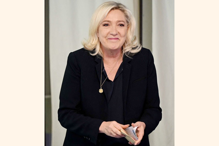 French far-right party (RN) leader Marine Le Pen arrives to cast her ballot — AFP