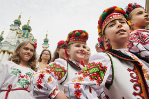 Photo: UKRAINE : Children wearing traditional Ukrainian clothes