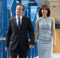 Photo: UNITED KINGDOM : British Prime Minister David Cameron (L) and his wife Samantha