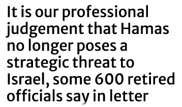 "It is our professional judgement that Hamas no longer poses a strategic threat to Israel," the officials said.