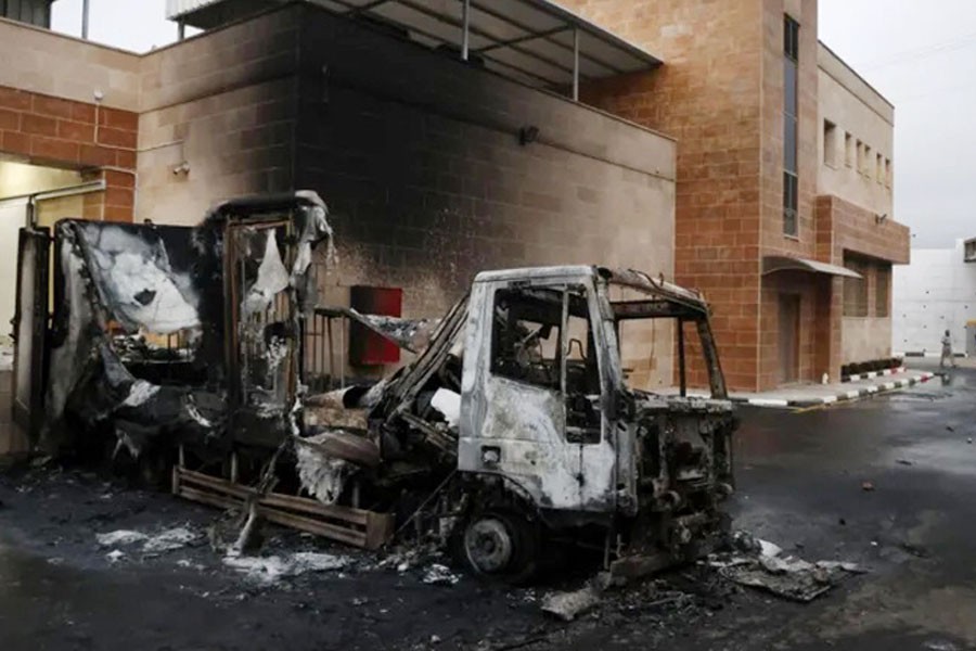 GAZA, Nov 12 (BBC): Dozens of Israeli settlers launched arson attacks targeting a Palestinian warehouse, a Bedouin village, and farmland in the north of the occupied West Bank on Tuesday.
