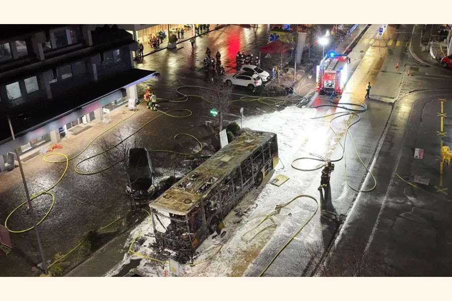 The burnt-out shell of the bus was screened off behind white tarpaulins set up across the road, an AFP journalist saw. The scene was cordoned off, with police standing guard at the tape. Firefighters and fire trucks were also present.