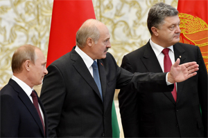 Ukrainian President Petro Poroshenko and Russian leader Vladimir Putin arrived in Minsk for a meeting with top EU officials and the leaders of Kazakhstan and Belarus, in a bid to defuse tensions that some fear could trigger all-out war between Kiev and and its Soviet master Moscow.