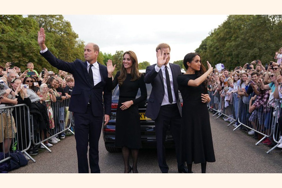LONDON, Sept 14 (BBC): Prince William and Prince Harry walked together behind their father King Charles III in a show of unity on Wednesday as they followed the Queen's coffin from Buckingham Palace ahead of her lying in state.